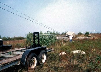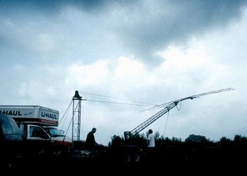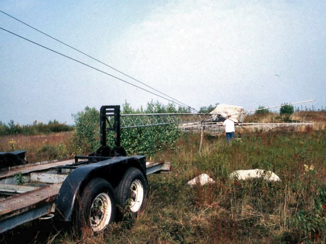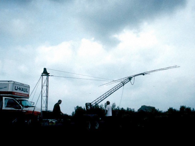 Bob, KA1QFE setting up his amazing home-brew 40 foot mobile tower