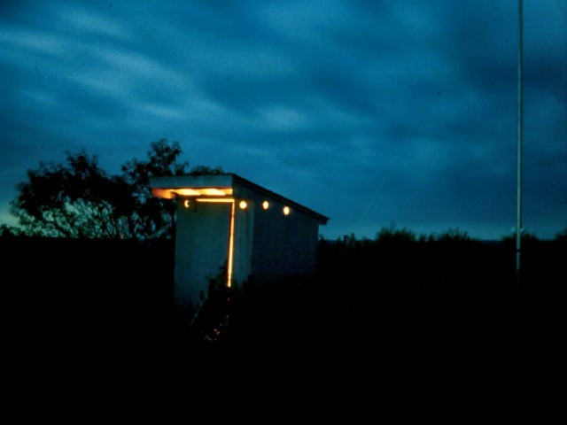Full moon & clouds cast erie glow, and the ultimate in comfort: electric outhouse!