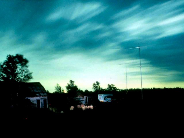 70cm(left) and 6 and 2 meter(right) antennas shrouded in Monday morning fog