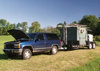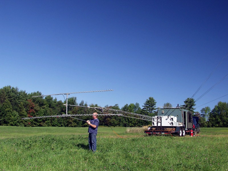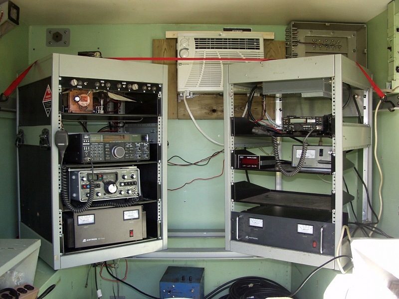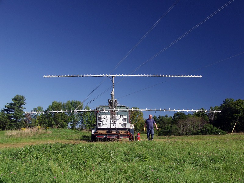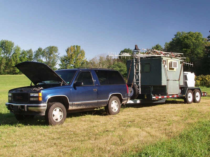 KA1QFE's 40' mobile tower, 20kW diesel generator, and air-conditioned shack!