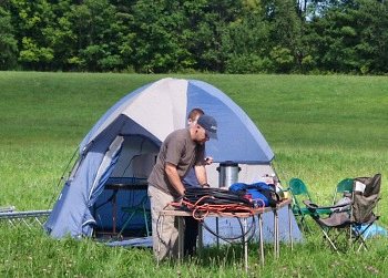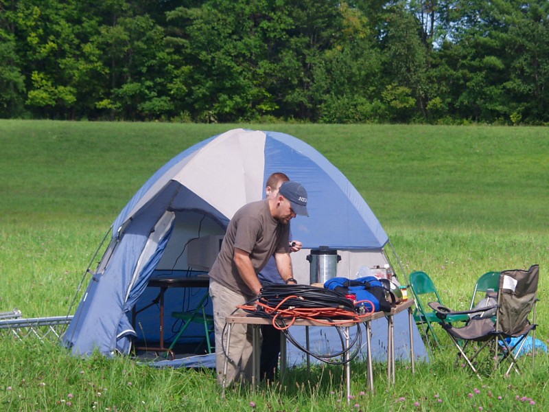 Stan (N1VAP) & Nikoli (W1VAP) set up 6m/2m/70cm station (left),