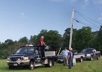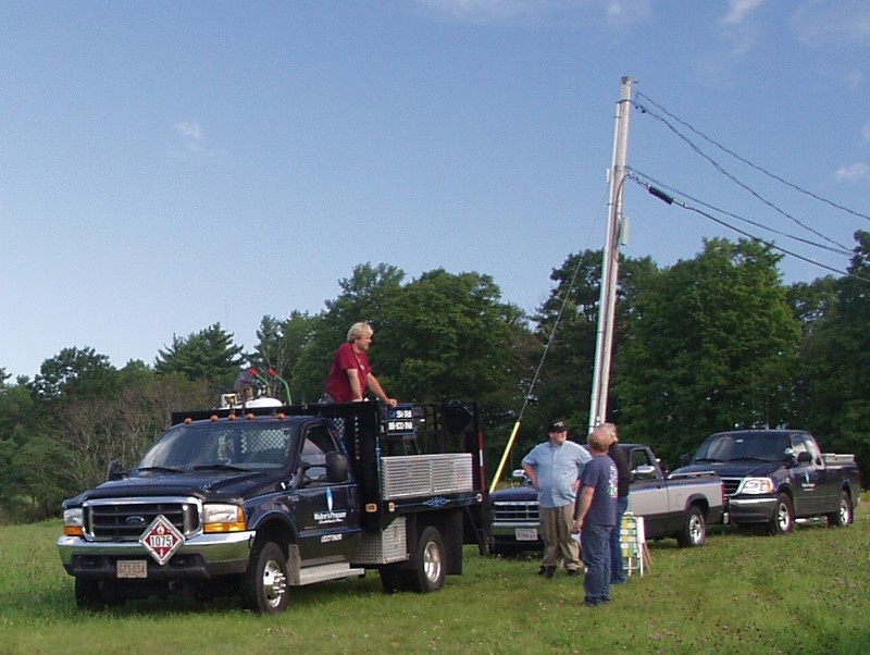 Bob (KA1QFE) assembles 903 and 1296 antennas prior to tower raising.
