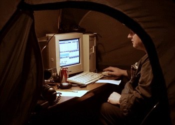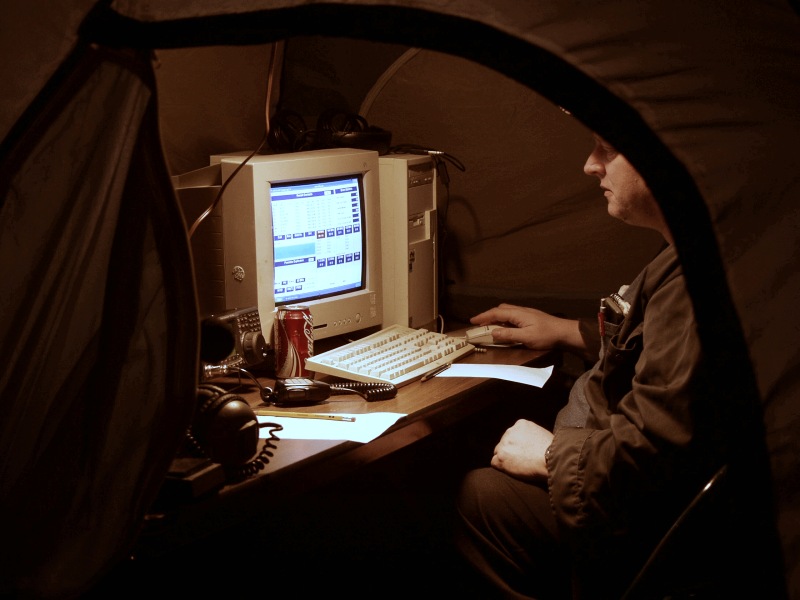 View of 50/144/432 tent and tower (left), and operating position (right).