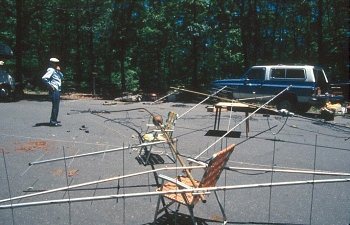 Antenna set up (left) experiences a minor technical difficulty (right).
