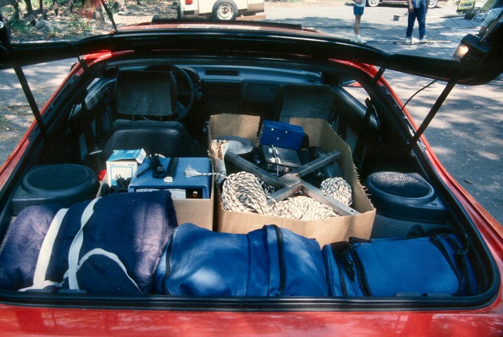 Everything finally stuffed back into vehicles.